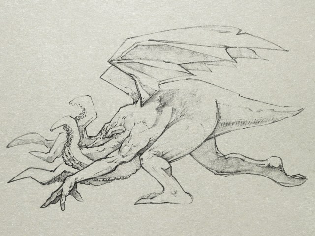 Cthulhu-222 A sketch of Cthulhu, the HP Lovecraft monster-god by David Schlosser Release the Kraken: Click to share on Pinterest (Opens in new window) Pinterest Click to share on Reddit (Opens in new window) Reddit Click to share on X (Opens in new window) X Click to share on Facebook (Opens in new window) Facebook Click to share on WhatsApp (Opens in new window) WhatsApp Like Loading...