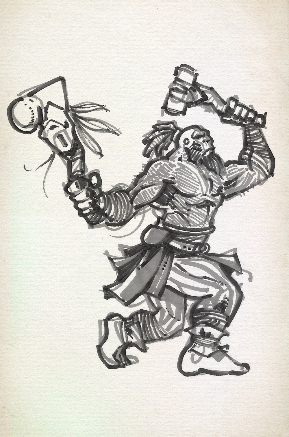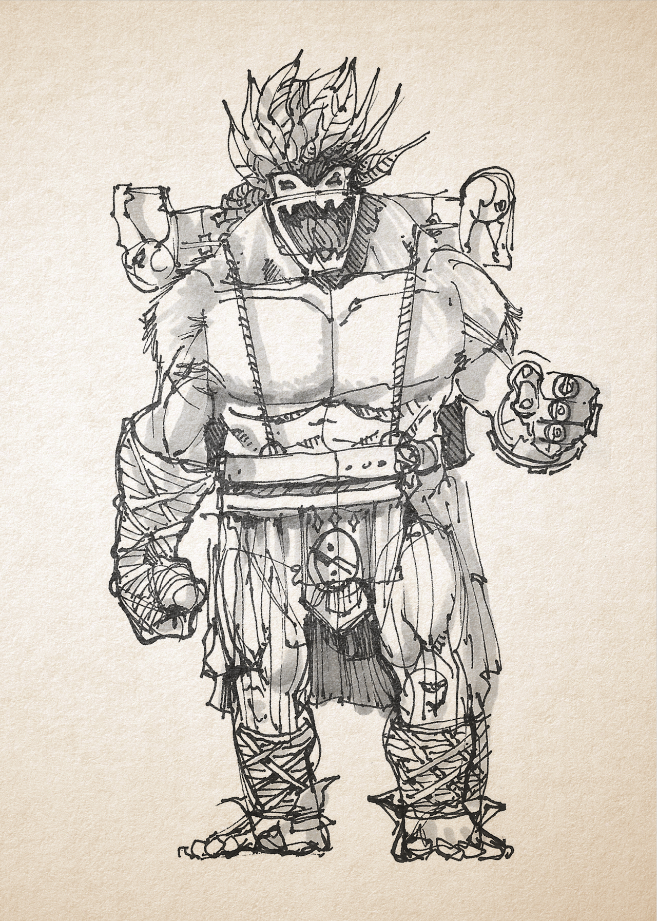 A group of Half-orcs hunted and trapped Momo (a bigfoot). They kept him like an animal and trained him as a pit fighter. The half-Orcs taught Momo to trigger his rage and focus his fury in combat. He fought many creatures in the pits before escaping the half-orc troop. Here are some of the fights that took place in the underground arena known as The Seventh Circle: